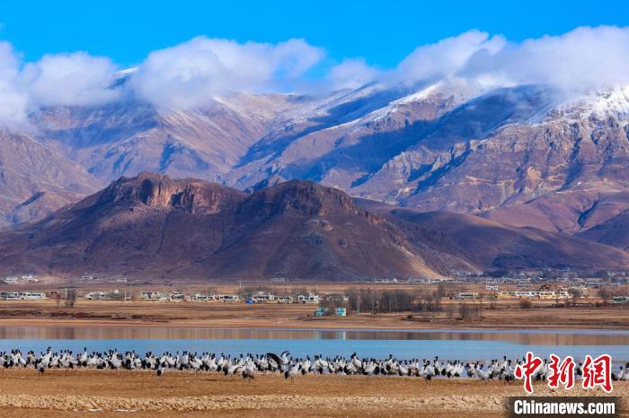 圖為2月21日,在拉薩市林周縣越冬的黑頸鶴群。益西旦增 攝