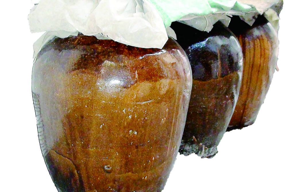 春季是釀造黃酒的最好季節(jié),也是王建平最忙碌的時(shí)候。他和徒弟們精選上等黃米、大米、小麥、大麥和青稞,清水淘洗,蒸、煮、涼、拌后,加上優(yōu)質(zhì)酒曲放入大缸密封,經(jīng)過一兩年或兩三年,甚至七八年的窖藏,榨出的地道河州黃酒質(zhì)純、色清,酒精濃度為18度左右。而封存釀期愈長,香味愈濃,色澤愈黃。