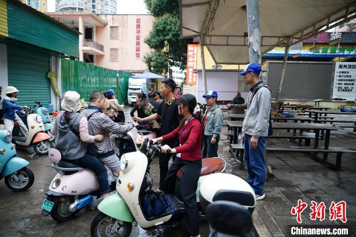 3月16日,云南省紅河州河口縣街頭,數(shù)位越南游客騎著租來的電動車游玩。中新社記者  劉冉陽  攝