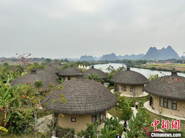 3月17日,游客打卡位于廣西崇左的在野宿集民宿群。  俞靖 攝
