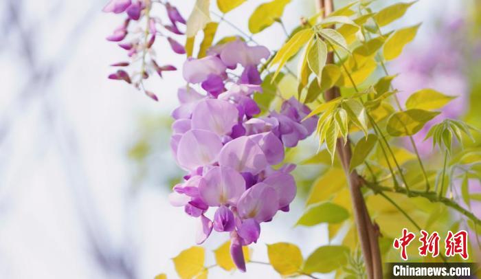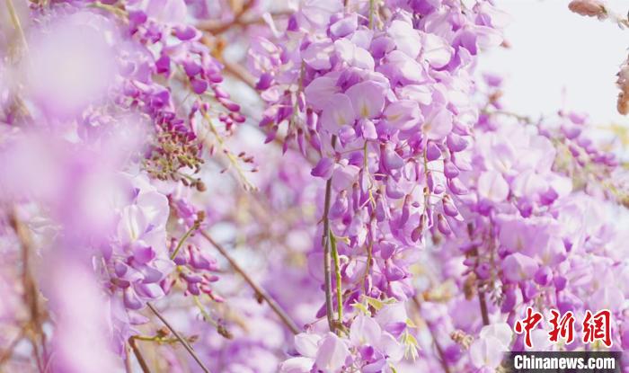 近日,廣西賀州市北堤公園的紫藤花迎春盛放,一串串紫藤花垂掛枝頭,花朵飽滿(mǎn)可愛(ài),在綠色枝葉的掩映下,呈現(xiàn)出一派朝氣蓬勃的景象。圖為北堤公園的紫藤花。覃麗華  攝