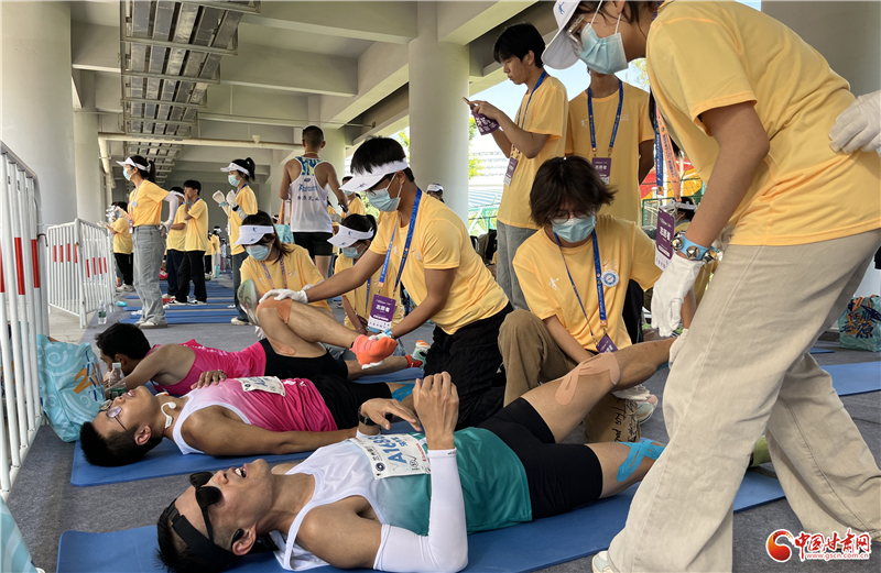 醫(yī)療點旁,經(jīng)過專業(yè)急救培訓(xùn)的志愿者時刻保持警惕,密切關(guān)注選手狀態(tài),一旦發(fā)現(xiàn)有選手腳步踉蹌或面色異常,立刻上前攙扶,協(xié)助醫(yī)護人員進行緊急處理;賽道關(guān)鍵路口,交通指引志愿者筆直站立,用標(biāo)準(zhǔn)的手勢引導(dǎo)車輛繞行,為選手們開辟出一條安全暢通的奔跑之路。