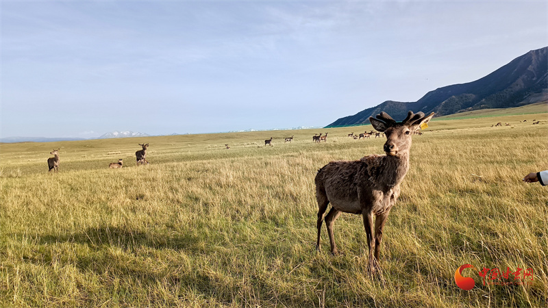 初夏的肅南大河草原牧草逐漸返青,一群群馬鹿在草原上悠閑覓食,游客到來(lái)并沒(méi)有打擾它們的正?;顒?dòng)。