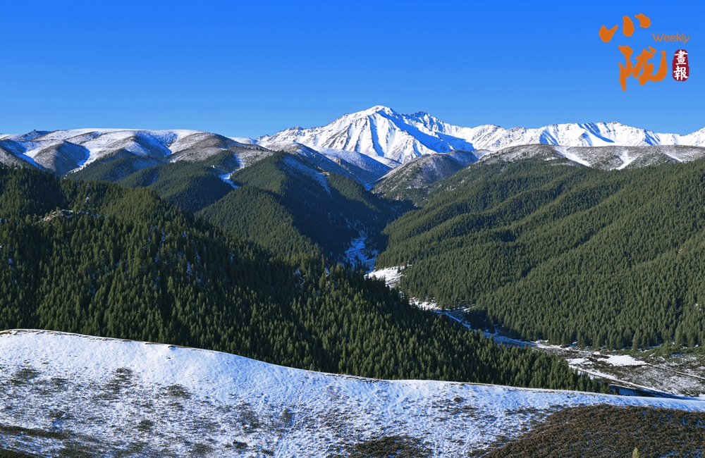 祁連雪峰周圍群峰羅列、層巒疊嶂,高低延綿的群山被此起彼伏的林海包圍,像一道道五彩的波浪,郁郁蔥蔥,生機(jī)盎然。站在祁連山巔俯瞰,冰川積雪與綠洲農(nóng)田、森林構(gòu)成震撼人心的生態(tài)畫卷。