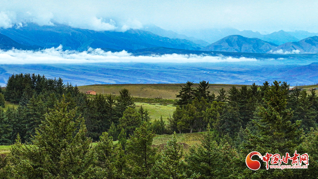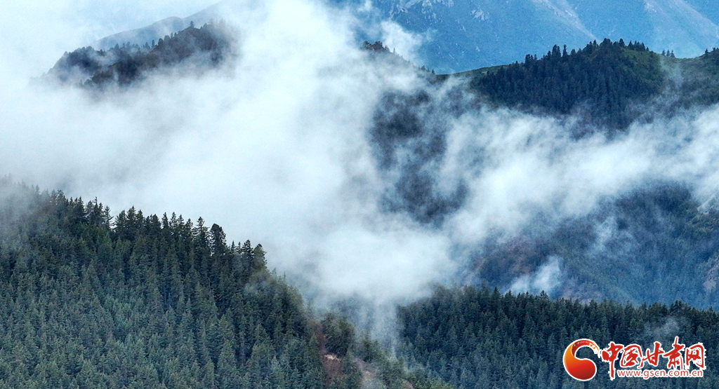 6月21日清晨,位于張掖市肅南裕固族自治縣境內(nèi)的祁連山國家公園,細(xì)雨初歇。云海如傾瀉的瀑布,在峰巒間翻涌,座座山峰時隱時現(xiàn)。朦朧的雪山與蒼松翠柏的原始森林、一望無際的碧綠草原,共同鋪展成這幅雨后的人間絕美畫卷。