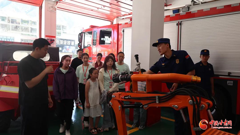 講解結(jié)束后,消防員帶領(lǐng)大家參觀了消防救援車輛、專業(yè)救援設(shè)備及消防員日常生活區(qū)域。在裝備展示區(qū),消防員詳細(xì)講解了液壓破拆工具、生命探測儀、水域救援裝備等器械在泥石流、火災(zāi)等不同災(zāi)害場景中的應(yīng)用,結(jié)合舟曲地質(zhì)災(zāi)害特點,生動還原救援場景,讓參觀者深刻體會到消防救援工作的復(fù)雜性、專業(yè)性與實用性。