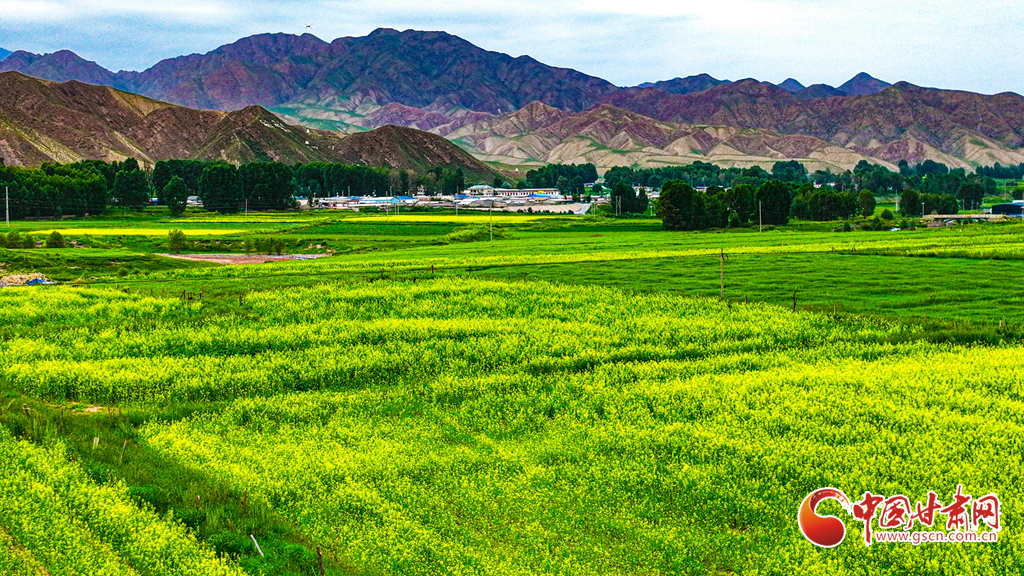 7月14日,一場(chǎng)小雨過后,張掖市肅南裕固族自治縣皇城鎮(zhèn)泱翔片區(qū),萬畝麥田泛黃、油菜花盛開如金。微風(fēng)吹拂,麥浪翻涌花香浮動(dòng)。遠(yuǎn)眺祁連山巍峨聳立,近觀民居錯(cuò)落有致,構(gòu)成一幅和諧的畫卷。