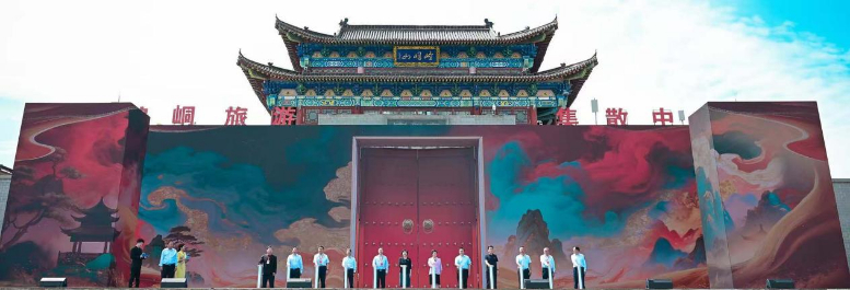 最受矚目的啟動儀式上,與會領導嘉賓共同觸發(fā)啟動裝置,現場大屏如“城門”般緩緩開啟,崆峒古鎮(zhèn)城門同步打開,各門派旗幟于城門之上迎風飄揚。啟動嘉賓與各門派代表共同步入城門,象征著崆峒武術打破邊界、融會貫通的武學精神,更開啟了各方交流共進的新篇章。