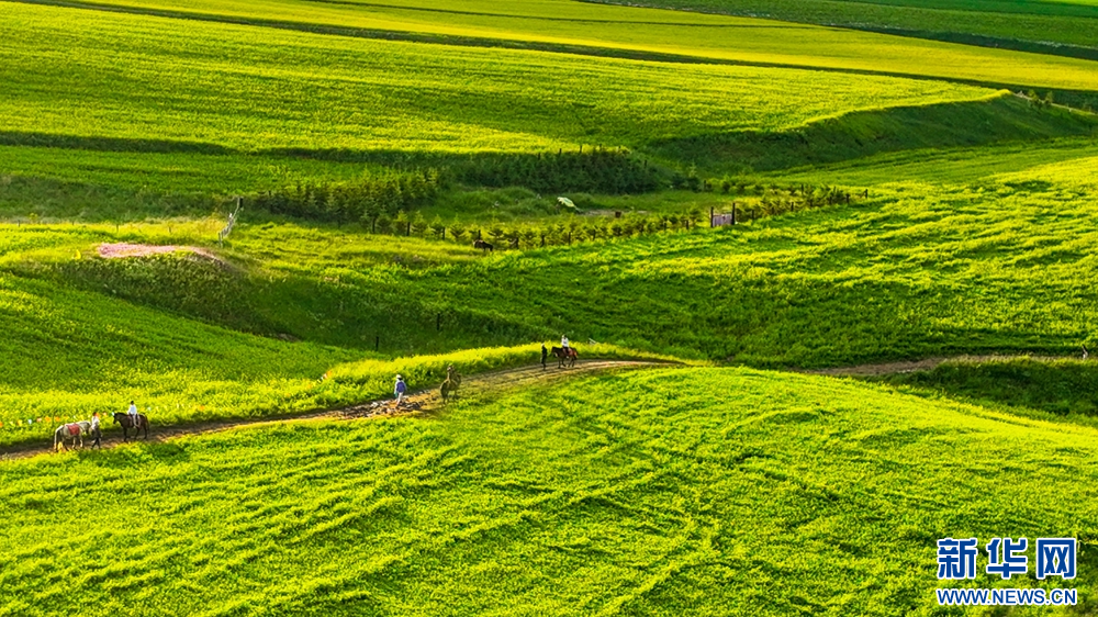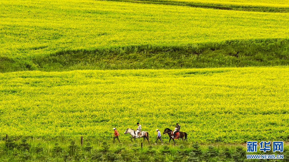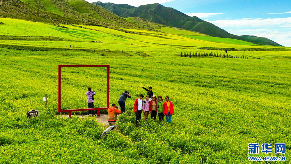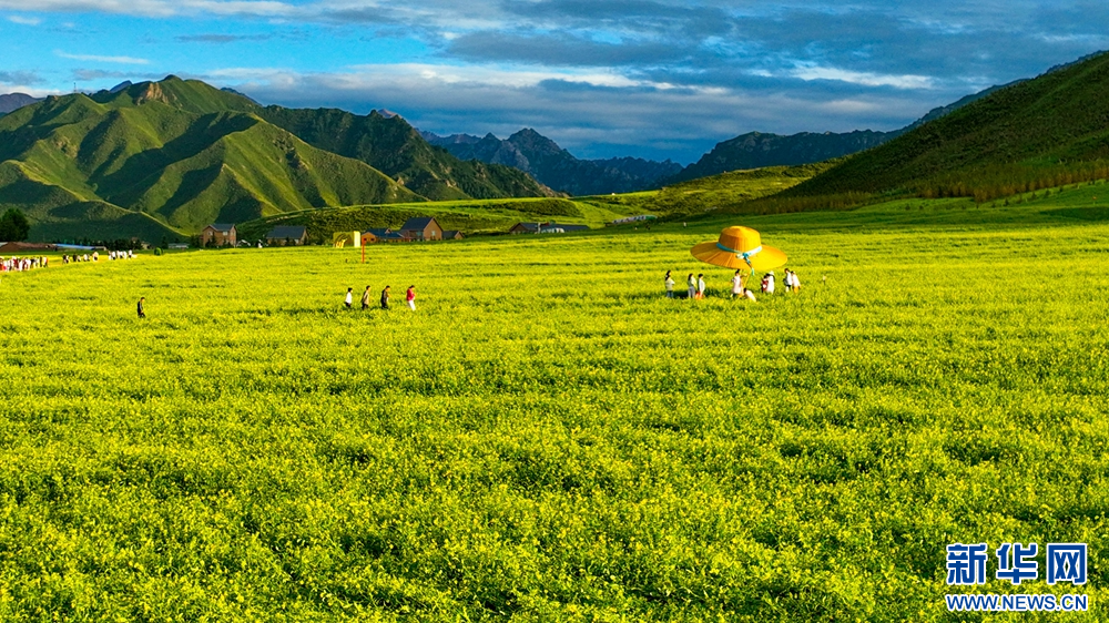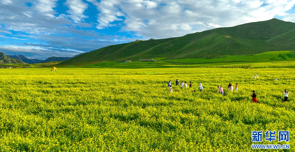 連日來,位于祁連山下的甘肅省張掖市民樂縣扁都口景區(qū)萬畝油菜進(jìn)入盛花期。金黃的油菜花海與草原綠野相連,空氣中彌漫的淡淡花香,醞釀山川,醉了游人。新華網(wǎng)發(fā)(王將 攝)