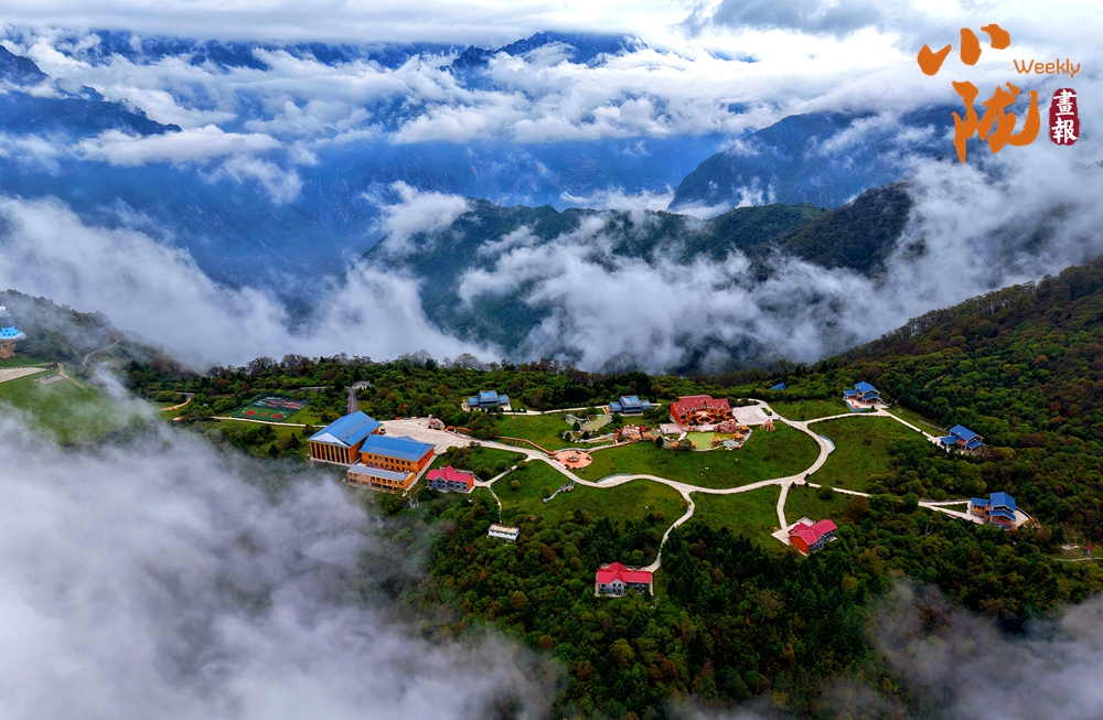 霧氣繚繞之間,山巒若隱若現(xiàn)。這座藏于山水之間的靈秀之地,在霧海的映襯下,如詩(shī)如畫(huà),展現(xiàn)出一種超脫塵世的靜謐與神秘。
