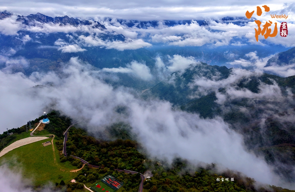 雨后,近處的山巒,青翠欲滴,山間云霧繚繞,如同一條條白色的絲帶,纏繞在山腰間,時(shí)而聚攏,時(shí)而散開(kāi),時(shí)而漫過(guò)山頂,讓遠(yuǎn)山如海中仙島。