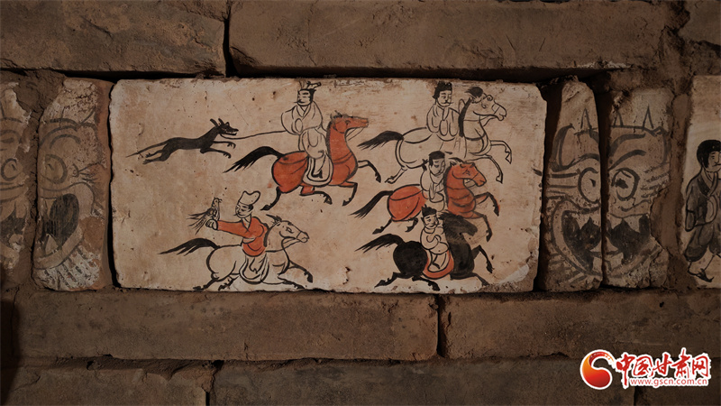 高臺縣魏晉壁畫墓,位于駱駝城東南5公里處的戈壁臺地,該墓曾兩次被盜,90年代后期由甘肅省文物考古研究所與高臺縣博物館實施搶救性清理。其中,100多塊彩繪畫像磚成為學(xué)界焦點。