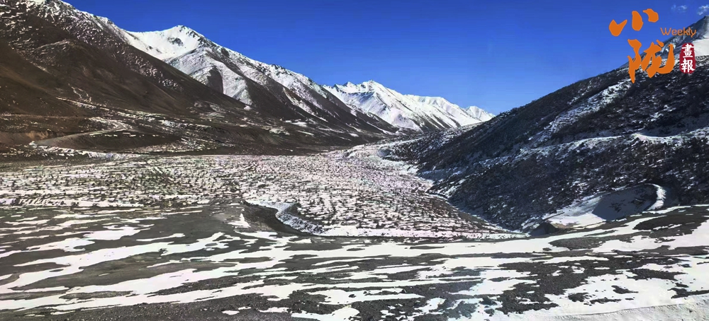 藍天澄澈如洗,雪山在陽光下泛著冰清的素白,腳下草原鋪展成遼闊的金黃,盡現(xiàn)西北大地獨有的蒼茫和寬廣,漫過視野,別具風情。