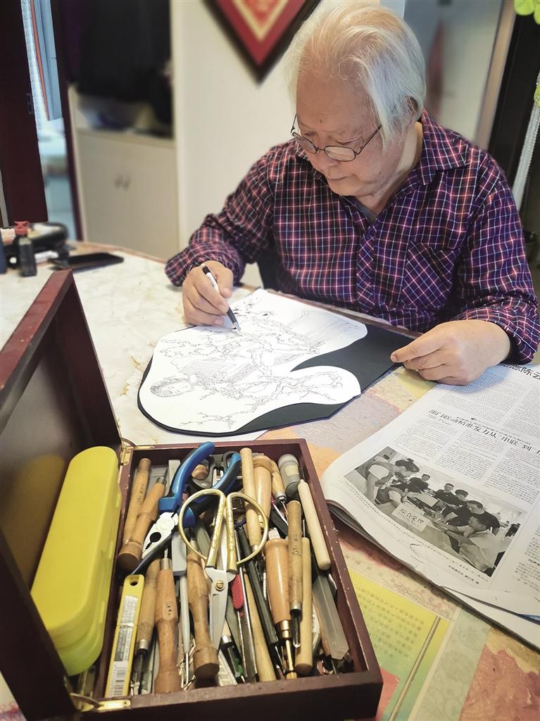 談到創(chuàng)作過(guò)程,他眼神中閃爍著匠人的嚴(yán)謹(jǐn)光芒:“剪一個(gè)好作品,首先要有一個(gè)構(gòu)思,然后再把它畫出來(lái),再去動(dòng)剪刀、刻刀各種工具。” 在他這里,剪紙絕非簡(jiǎn)單的“剪花樣”,而是嚴(yán)謹(jǐn)?shù)乃囆g(shù)創(chuàng)作,是“胸有成竹”后的“運(yùn)剪如風(fēng)”。
