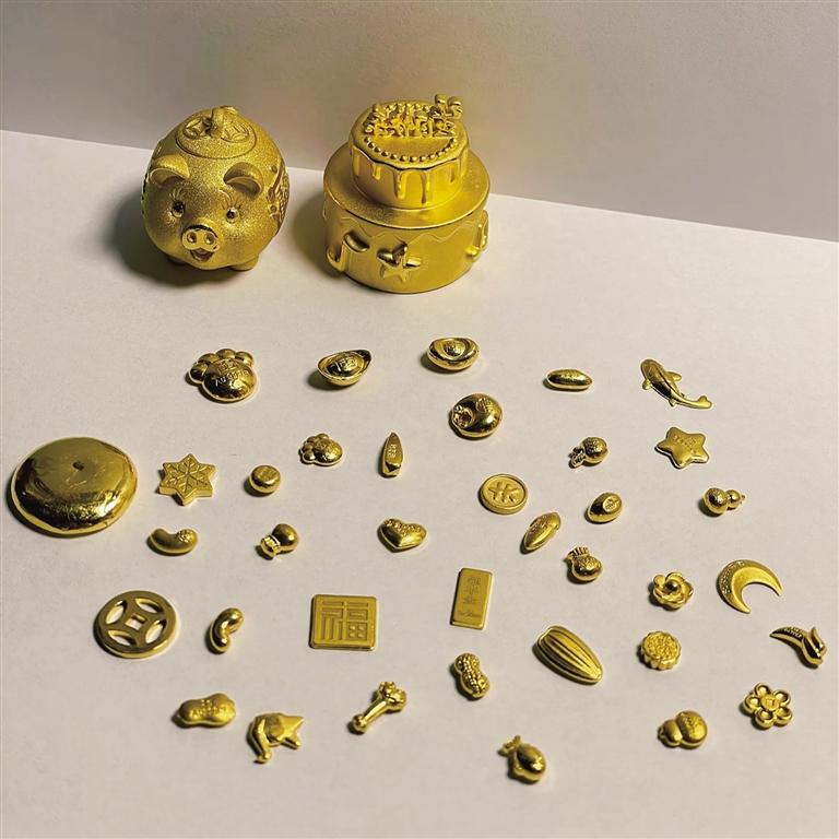 “以前總覺得黃金離我們很遠,不是長輩戴的厚重手鐲,就是結(jié)婚用的大件首飾,沒想到現(xiàn)在十幾塊錢就能買。”李萌一邊挑選著卡通黃金吊墜,一邊感慨。貨柜里,熱門卡通形象齊聚,有些還配有“馬上有錢”“公主請發(fā)財”等俏皮文字,定價全部19.9元,吸引了不少顧客買單。