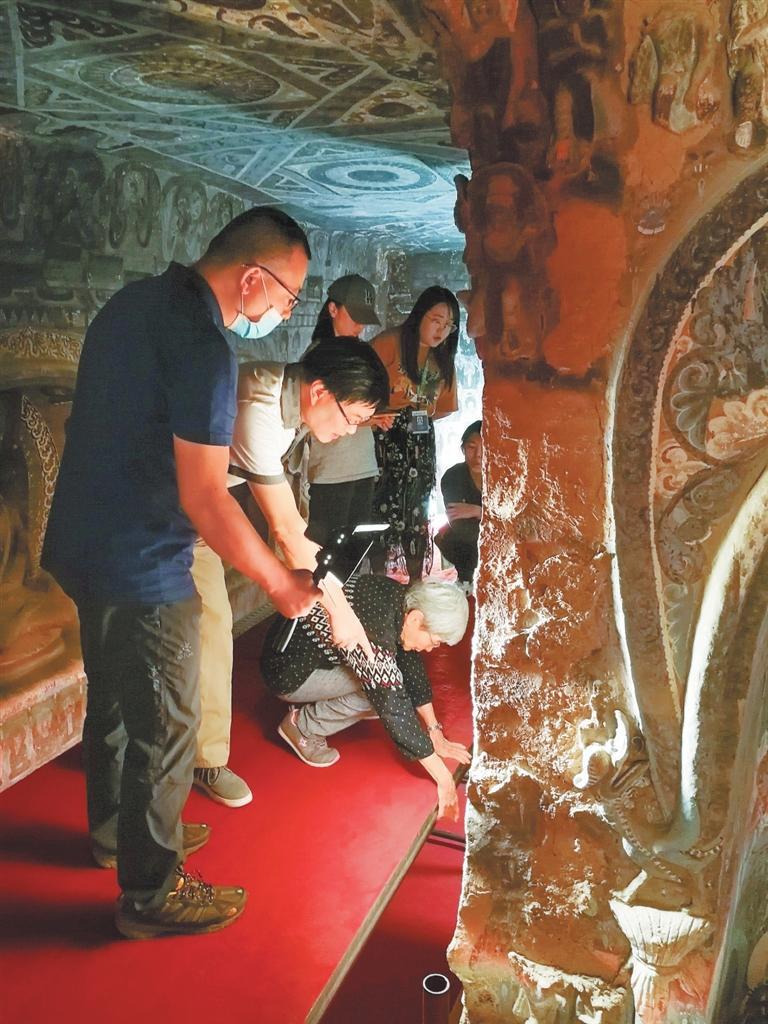 考古報(bào)告此前多年難以出爐還與技術(shù)條件不成熟有關(guān)。“最早的時(shí)候,我們誰見過電腦呀,繪圖用的是‘小平板’,測量用的是垂球、三角板。測量的人爬上爬下,繪圖的人說往左往右……又慢又不準(zhǔn)。洞窟不像我們住的房子那么四四方方,洞窟里不是壁畫就是塑像,又不能搬動,測量先就是個(gè)大難題。”直到近些年,三維激光掃描測量儀器問世、高精度數(shù)據(jù)采集、數(shù)字?jǐn)z影、用電腦軟件精確繪圖等技術(shù)成熟,才使全面、高效、非接觸地獲取洞窟三維數(shù)據(jù)、高清圖像并進(jìn)行虛擬拼合與重建成為可能。