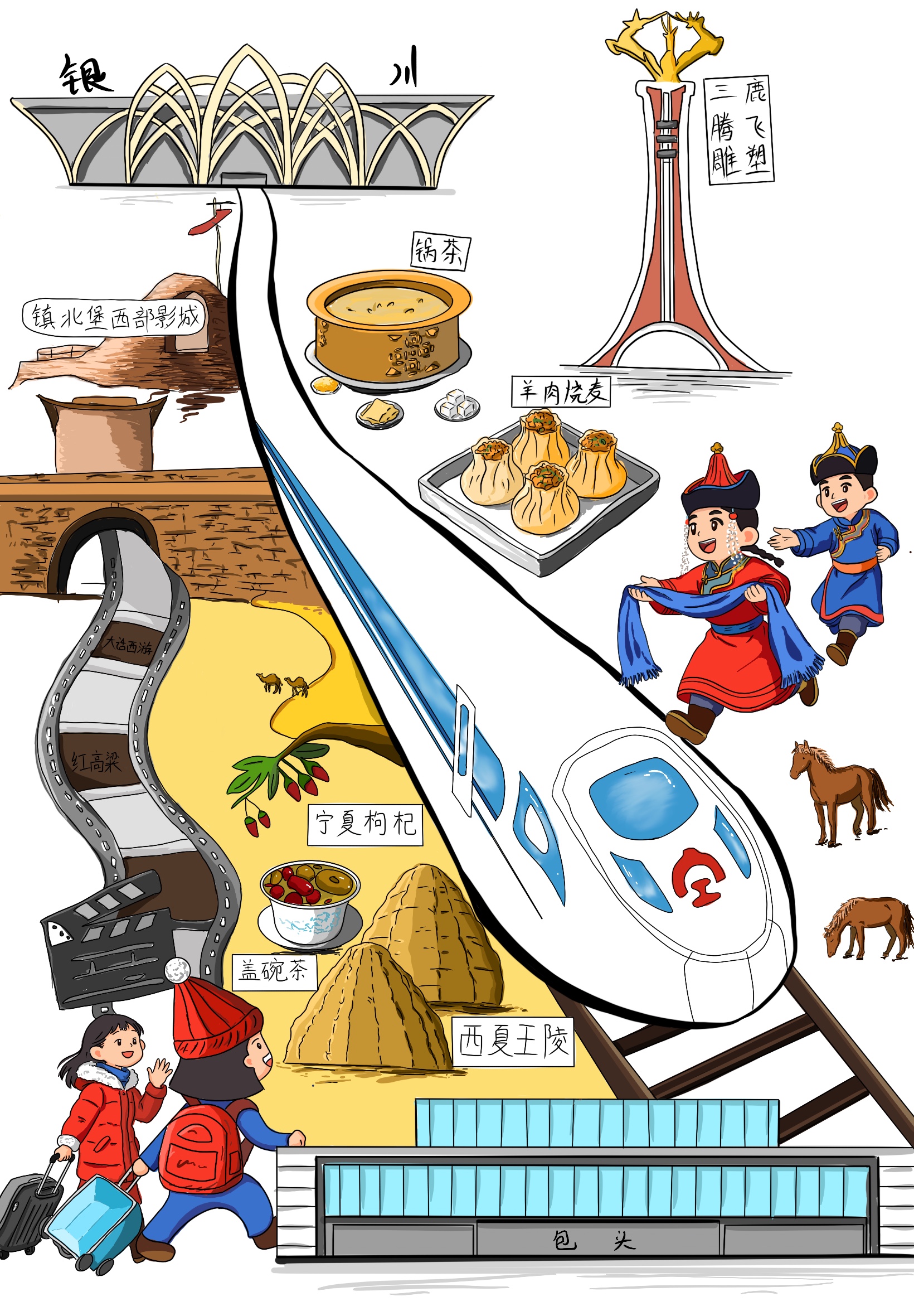 不負山河浩蕩,不負星河燦爛。這條貫穿西北的鋼鐵巨龍,不僅是一條便民出行的快捷線,更是助力發(fā)展的經(jīng)濟線、促進交流的文化線。無論是由此帶來的沿線旅游、產(chǎn)業(yè)、就業(yè)的發(fā)展,還是鐵路企業(yè)自身建設,都將呈現(xiàn)出勃勃生機,為西北大地帶來更多的發(fā)展活力與無限可能。面向“十五五”,包銀高鐵必將推動沿線經(jīng)濟社會發(fā)展駛入“快車道”,在新征程上續(xù)寫更輝煌的篇章。(文字:陳浩媛  漫畫:李雨晴,朱雪菲)