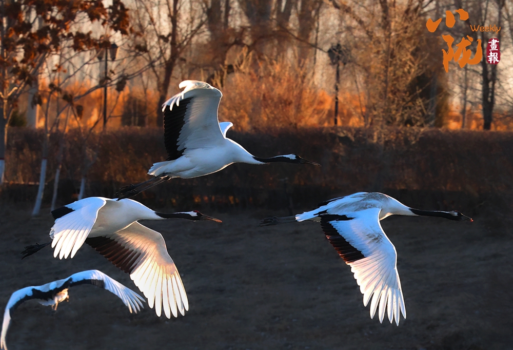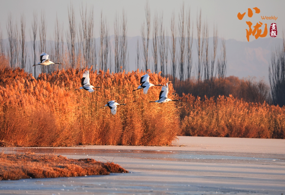 金色的蘆葦坡上均能看到它們優(yōu)雅的身影。這里,除了丹頂鶴,還有天鵝、綠頭鴨、斑頭雁等很多水鳥,它們的倩影成為濕地冬日里最動人的靈動色彩。