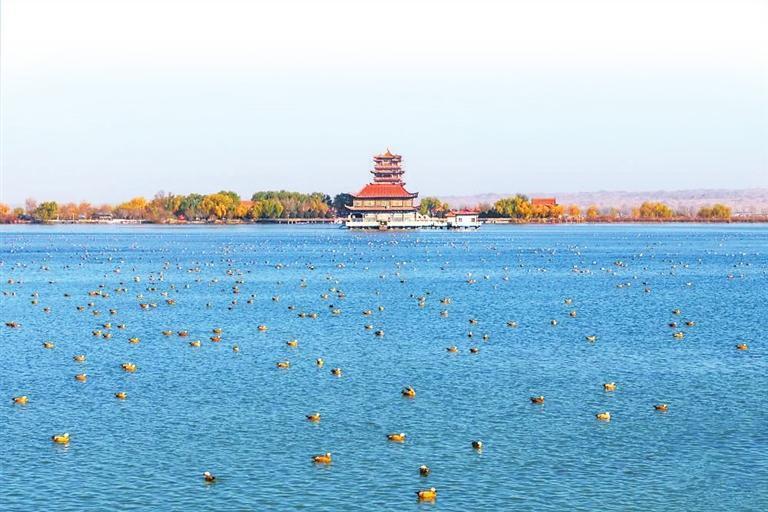 而在河西走廊東端的武威,天馬湖濕地則是城市中的“候鳥天堂”。天馬湖是人工修建的濕地,卻憑借著良好的生態(tài)環(huán)境,吸引了大量候鳥前來。冬季的天馬湖,岸邊的樹木掛滿了冰掛,晶瑩剔透,湖面的水域里,綠頭鴨、斑嘴鴨成群游動,偶爾還有白鷺在湖邊駐足,它們與城市中的建筑相映成趣,成為武威冬日里一道獨(dú)特的風(fēng)景線。