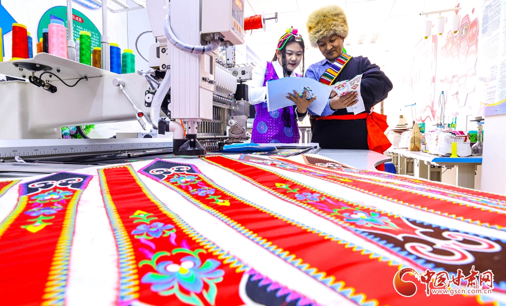 隨著機(jī)械臂精準(zhǔn)移動、數(shù)字設(shè)備高速運(yùn)行,過去,手工完成一套裕固族服裝需耗時近一年;如今依托智能機(jī)器與手工協(xié)作的模式,僅一周即可制成,且圖案新穎、繡工勻整。裕固族、藏族、蒙古族等民族服裝的制作成本也降至原來的三分之一。