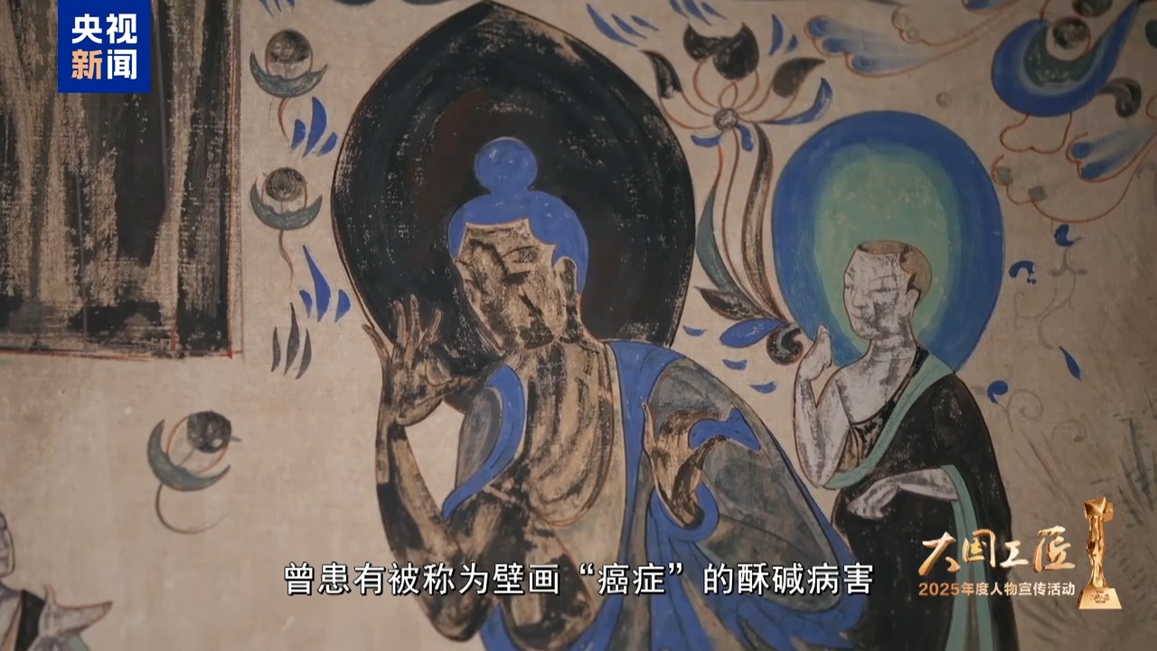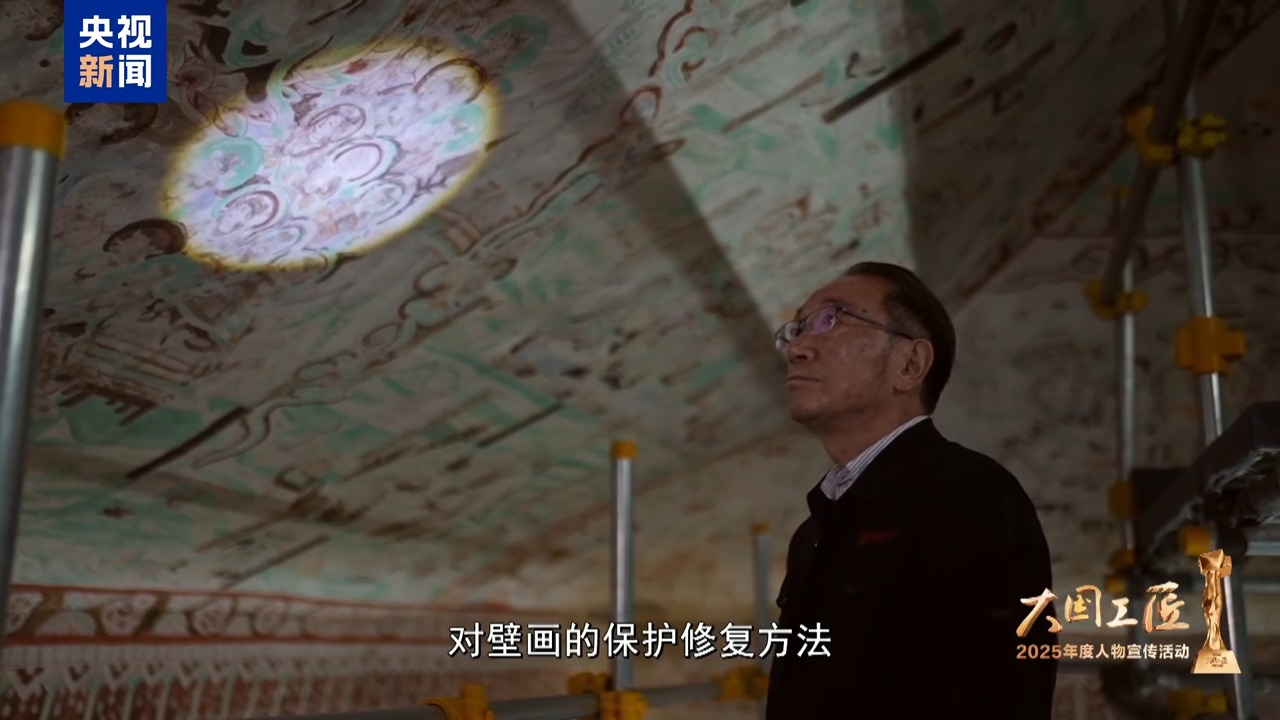 2025年大國工匠年度人物、敦煌研究院壁畫保護修復專家 樊再軒:這里,是我守護一生的地方——敦煌莫高窟,它是大漠深處矗立千年的文明圣殿。45年前,我開始修復敦煌壁畫,總感覺是在和古代的畫工們進行著跨越時空的交流。這些壁畫,它是會呼吸的,它是有生命的。然而,壁畫當中潛藏著很多的可溶鹽,在洞窟里受到溫濕度的影響,反復地潮解、結晶,導致壁畫膨脹、收縮。就像一雙雙無形的手,在一點一點撕裂著壁畫的肌膚,這就是壁畫“癌癥”。我暗下決心:要讓這千年瑰寶在時光的長河里留存得久一點,更久一點。