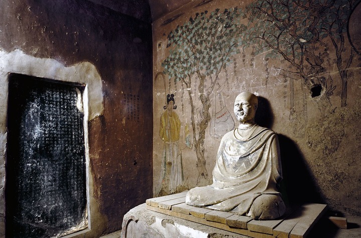 莫高窟第17窟是舉世聞名的藏經(jīng)洞。1900年,這里石破天驚,出土數(shù)萬(wàn)件文物,“國(guó)際顯學(xué)”敦煌學(xué)也由此發(fā)軔。如今來(lái)到第17窟,眼前是一身作禪修狀的僧人塑像。人們不禁發(fā)問(wèn),他是誰(shuí)?