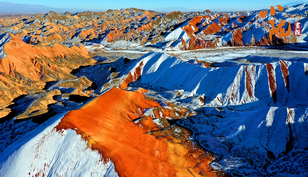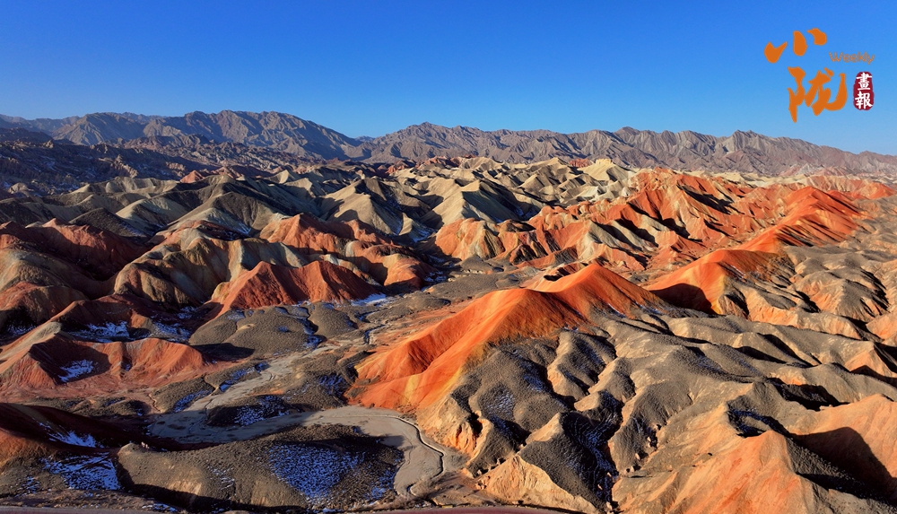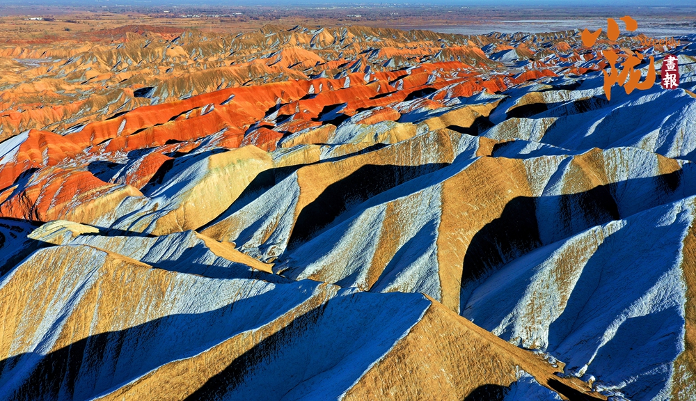 一場(chǎng)春雪后,臨澤七彩丹霞褪去了往日的張揚(yáng),化身為一幅“半是火焰、半是海”的水墨丹青長(zhǎng)卷。