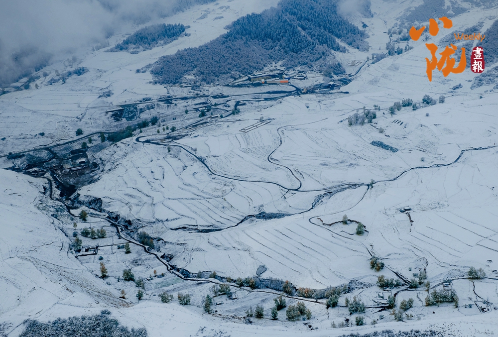 阡陌縱橫的農(nóng)田披上了素白的紗衣,天地之間,仿佛只剩下黑白兩種顏色,那遠(yuǎn)山的輪廓,那梯田的線條,那河床的蜿蜒,構(gòu)成了最純正的中國(guó)水墨畫(huà)。