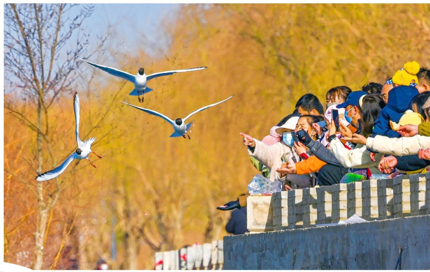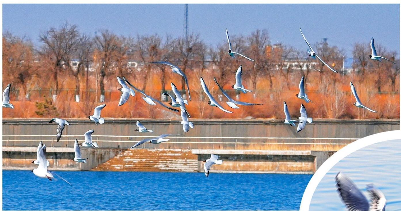 戈壁雄關(guān)迎鷗鳥,羽翼翩翩贊綠洲。連日來,大批鷗鳥分批飛抵我市討賴河生態(tài)文化景區(qū),或舒展輕盈舞姿與岸邊市民互動,或在氣盾壩上“列隊”小憩,或結(jié)伴翱翔感受春日暖陽,盡情享受著我市持續(xù)向好的生態(tài)環(huán)境。(照片由融媒體中心記者 李巍 攝)