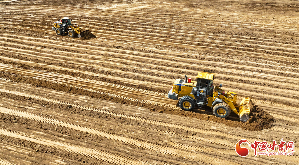 3月20日,在張掖市民樂縣新天鎮(zhèn)李寨村高標準農(nóng)田建設(shè)現(xiàn)場,推土機、平地機在田野間往來穿梭,將高低不平、細碎零散的“小塊田”逐步整合為連片“大田”。